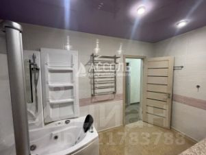 На полу пробка натуральная, комфортная и теплая, теплый пол за счет отопительной разводки в полу, ванная с гидромассажем, гигиенический душ, гладильная, красивый вид из окон на телевышку, которая светится.