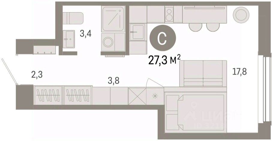 Студия в Кварталах Драверта. Особенности планировки: предчистовая отделка.