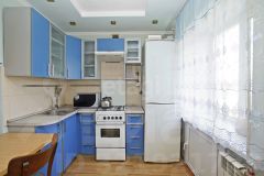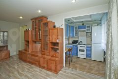 При продаже остается кухонный гарнитур, газовая плита, обеденная зона, диван с креслом, шкаф, шкаф-купе.