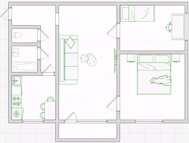 • Просторные помещения: светлая гостиная площадью 17,2 м², две уютные комнаты (8 м² и 9 м²) и функциональная кухня 6 м² — идеальное место для семейных ужинов.