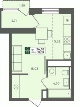 Продаётся студия в строящемся доме (ГП 2.1), срок сдачи: III-кв. 2026, общей площадью 28.29 кв.м., на 5 этаже.
