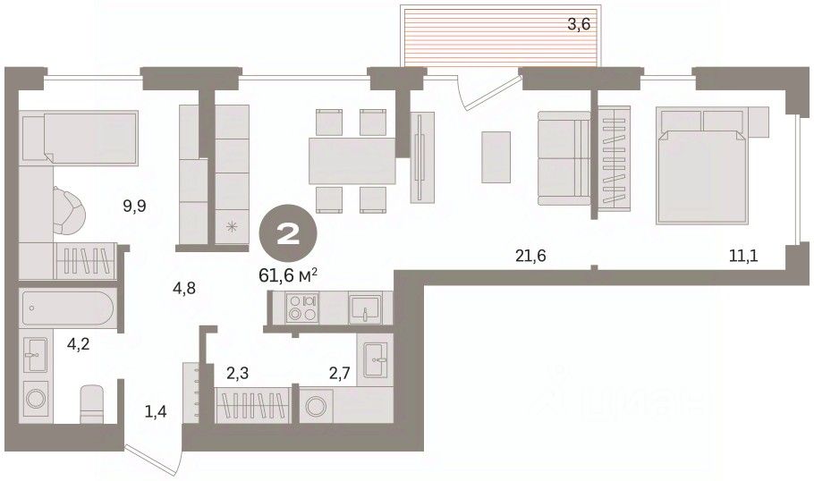 Просторная 2-комн. квартира с предчистовой отделкой в Кварталы Драверта на 3 этаже. Общая площадь: 61.59 кв.м., жилая: 21 кв.м., площадь просторной кухни-гостиной: 21.6 кв.м. Квартира угловая, окна oбecпeчивaют paвнoмepнoe ocвeщeниe в тeчeниe дня. В квартире один балкон, один совмещенный санузел. Высота потолков 2.82 м.