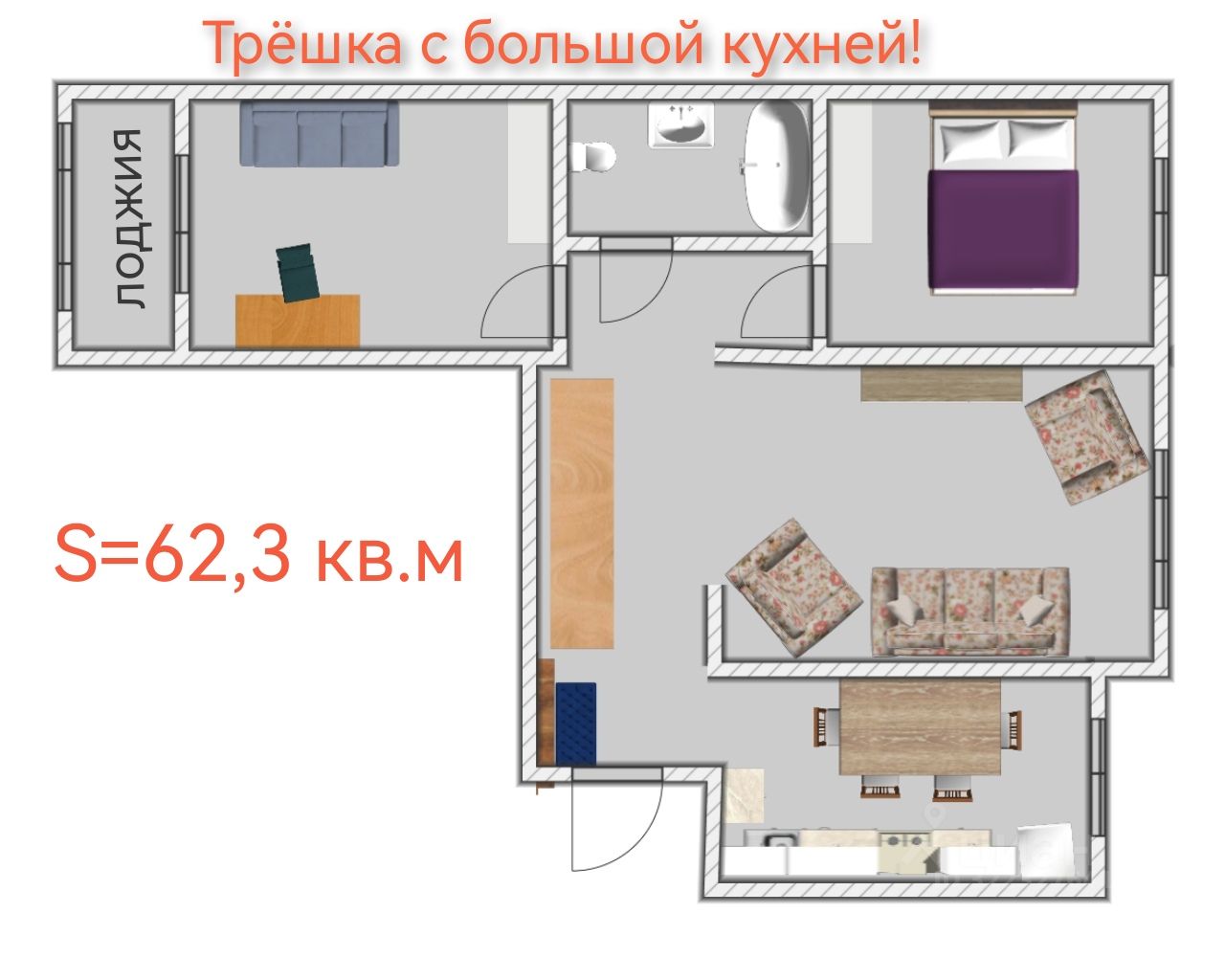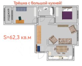 Трешка с большой кухней!!!