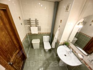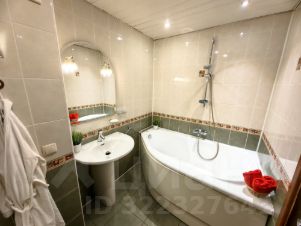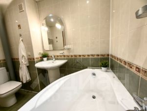 Совмещённый санузел позволил разместить большую ванну и увеличить пространство.