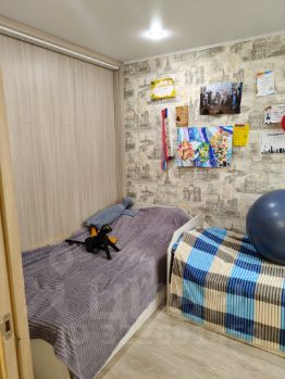 В квартире сделан косметический ремонт, что позволяет вам сразу въехать и жить. Планировка включает две комнаты и совмещенный санузел. Также есть кладовая, которая переоборудована в третью комнату без окна. Окна выходят на улицу, наполняя помещения естественным светом. Кухня достаточно просторная, чтобы разместить все необходимое для приготовления пищи.