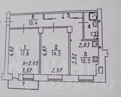 Общая площaдь квартиры - 57,1 м².