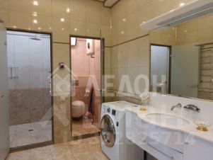 Квартира солнечная, теплая. Удачная планировка : просторная функциональная прихожая со шкафом-купе, две изолированные спальни - 18, 2 кв м, 28,8 кв м, кухня-столовая -47 кв м с выходом на лоджию, с окон которой открывается прекрасный вид на город. Предусмотрена гардеробная. Грамотно продуман санузел, где расположены джакузи, стационарная душевая комната с генератором для подачи пара в сауну, туалет. Квартира меблирована; встроенная мебель и техника включены в стоимость объекта.