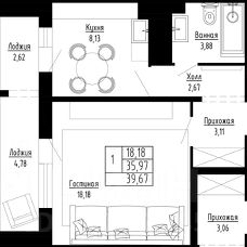 Площадь с учетом балкона - 43 кв.м, без учета - 37 кв.м.