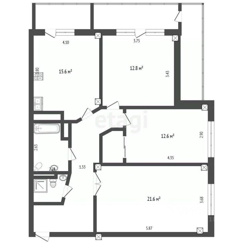 Квартира общей площадью 87.5 кв.м. включает в себя три изолированные комнаты, что обеспечивает максимальный комфорт для всей семьи. Просторная кухня (15.6 кв.м.) станет настоящим центром кулинарного творчества, а уютный зал (21.5 кв.м.) — идеальным местом для встреч с друзьями. Две спальни (14.6 и 12.8 кв.м.) подарят вам спокойствие и комфорт. Три балкона общей площадью 15.8 кв.м. обеспечат дополнительное пространство для отдыха, а благодаря тройному остеклению и утеплению потолков, вы сможете наслаждаться тишиной и теплом в любое время года.
