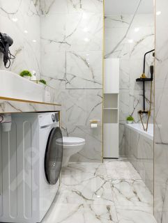 - Просторный санузел с ванной (установлен бойлер для нагрева воды, стиральная машина).