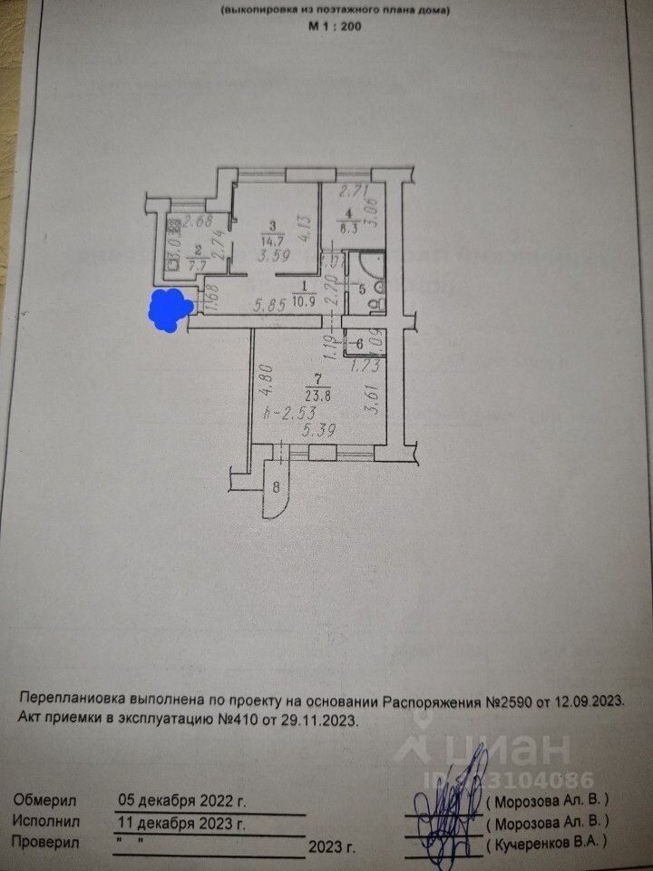 - перепланировка узаконена.