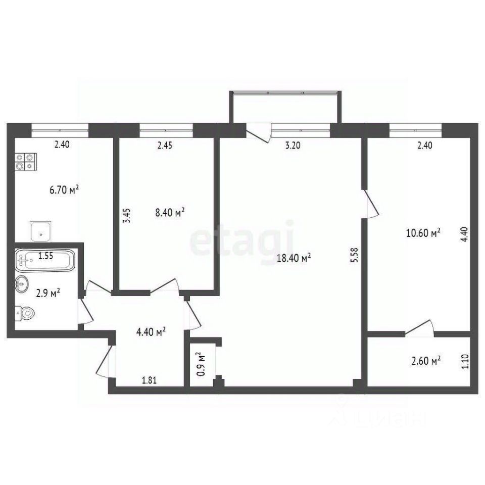 Просторная трехкомнатная квартира для большой семьи в тихом районе ждёт своих будущих обладателей.
