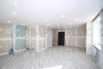 Ремонт: натяжной потолок с точечными светильниками, на полу-ламинат, стены выровнены, выполнена электроразводка по всей квартире, проведены трубы, установлен новый полотенцесушитель и унитаз с инсталляцией.