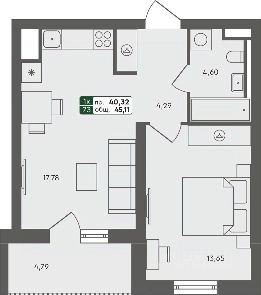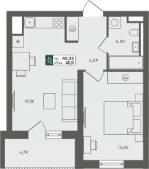 Общая площадь45,11 м²