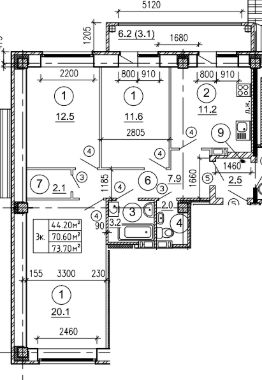 73,7 м²