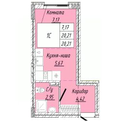 Продаётся 1-комнатная квартира в строящемся доме (Дом 1), срок сдачи: IV-кв. 2027, общей площадью 20.21 кв.м., на 1 этаже. Новый жилой дом от Специализированного застройщика "Вита на Дачной" расположен по адресу: г. Омск, ул. 2-я Дачная.