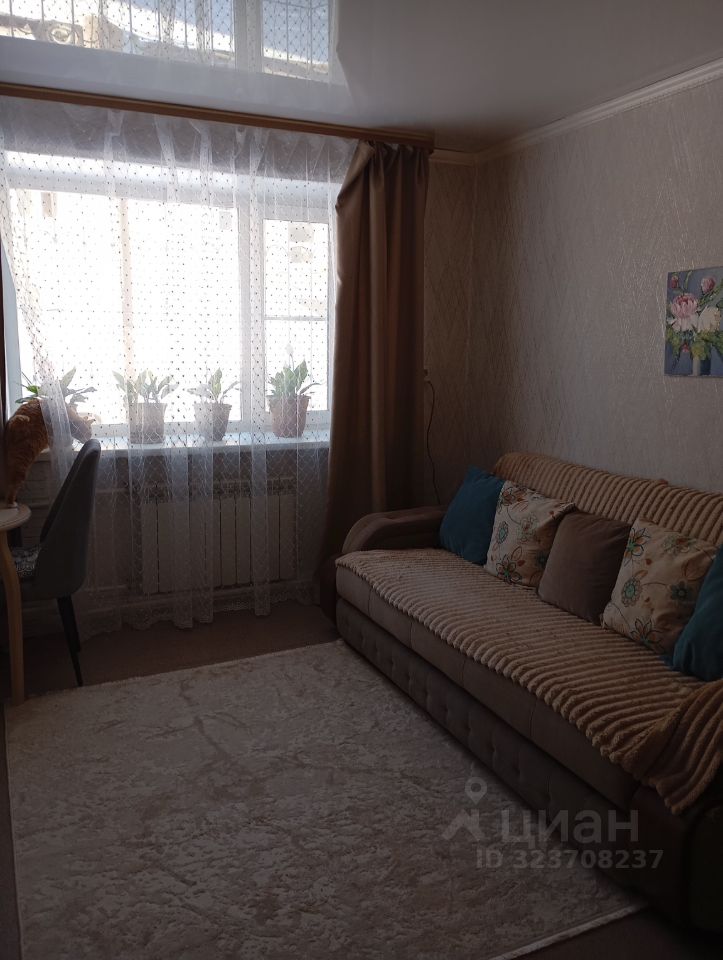 Диван, кровать, обеденный стол с 3-мя мягкими стульями, шторы и множество приятных домашних мелочей.