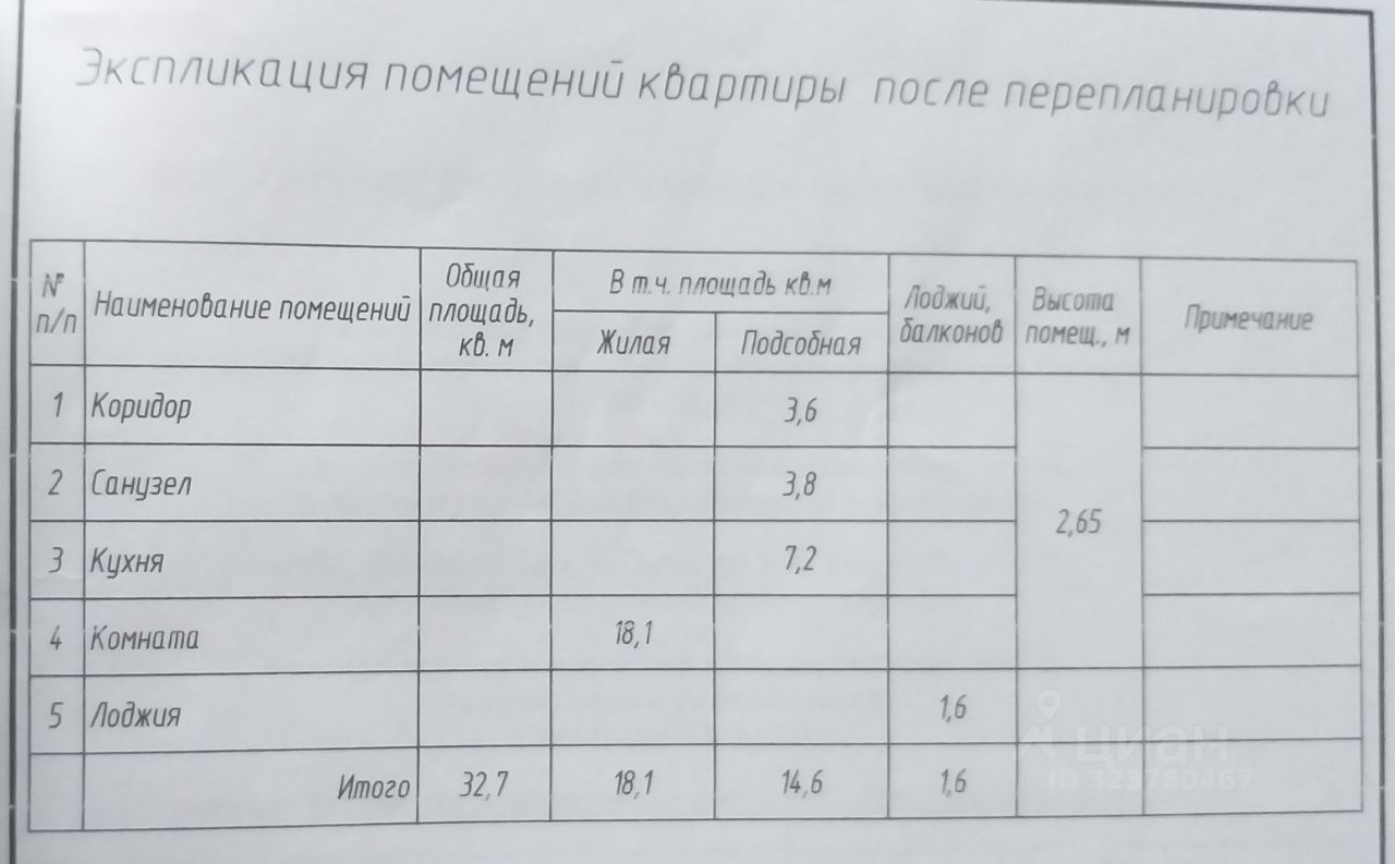 Площадь лоджии 1.6 кв.м., в площади квартиры не учитывается, фактическая площадь лоджии 3.2 м.кв. ( 2.9 м 1.1 м ).