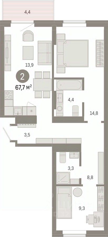 Общая площадь67,69 м²