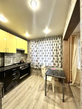 В квартире выполнен косметический ремонт. Натяжные потолки, пол устелен линолеумом.