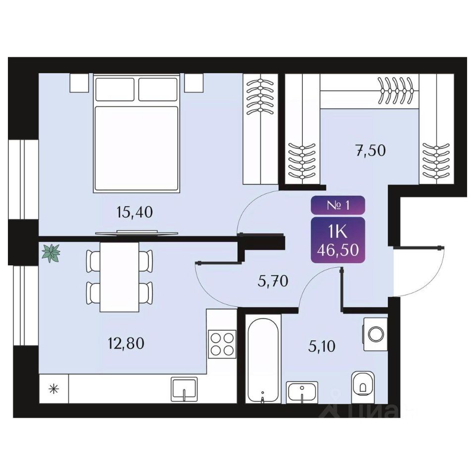 Общая площадь46,5 м²