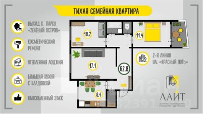 ТИХАЯ КВАРТИРА на второй линии ул. Красный Путь