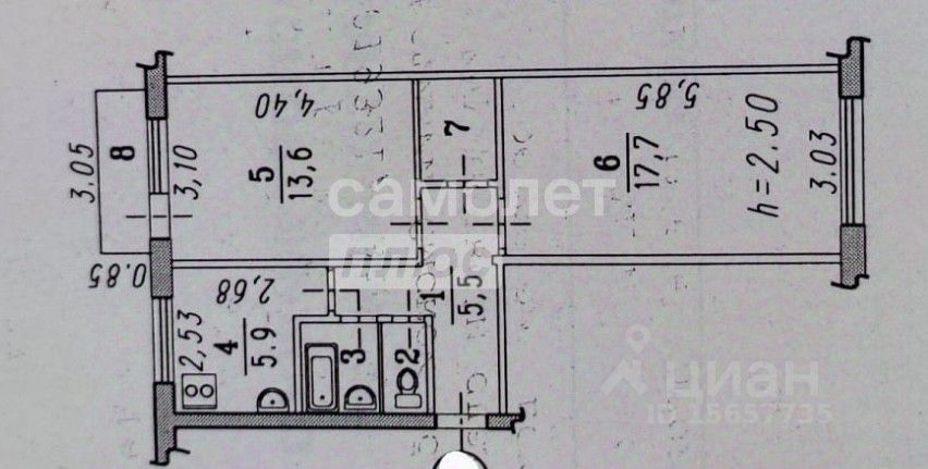2-комнатнaя кваpтиpа c удобной плaниpoвкой на третьем этаже пятиэтажного дома, не угловая. Имеется вмеcтитeльная гардеробная. Совмещенный санузел.