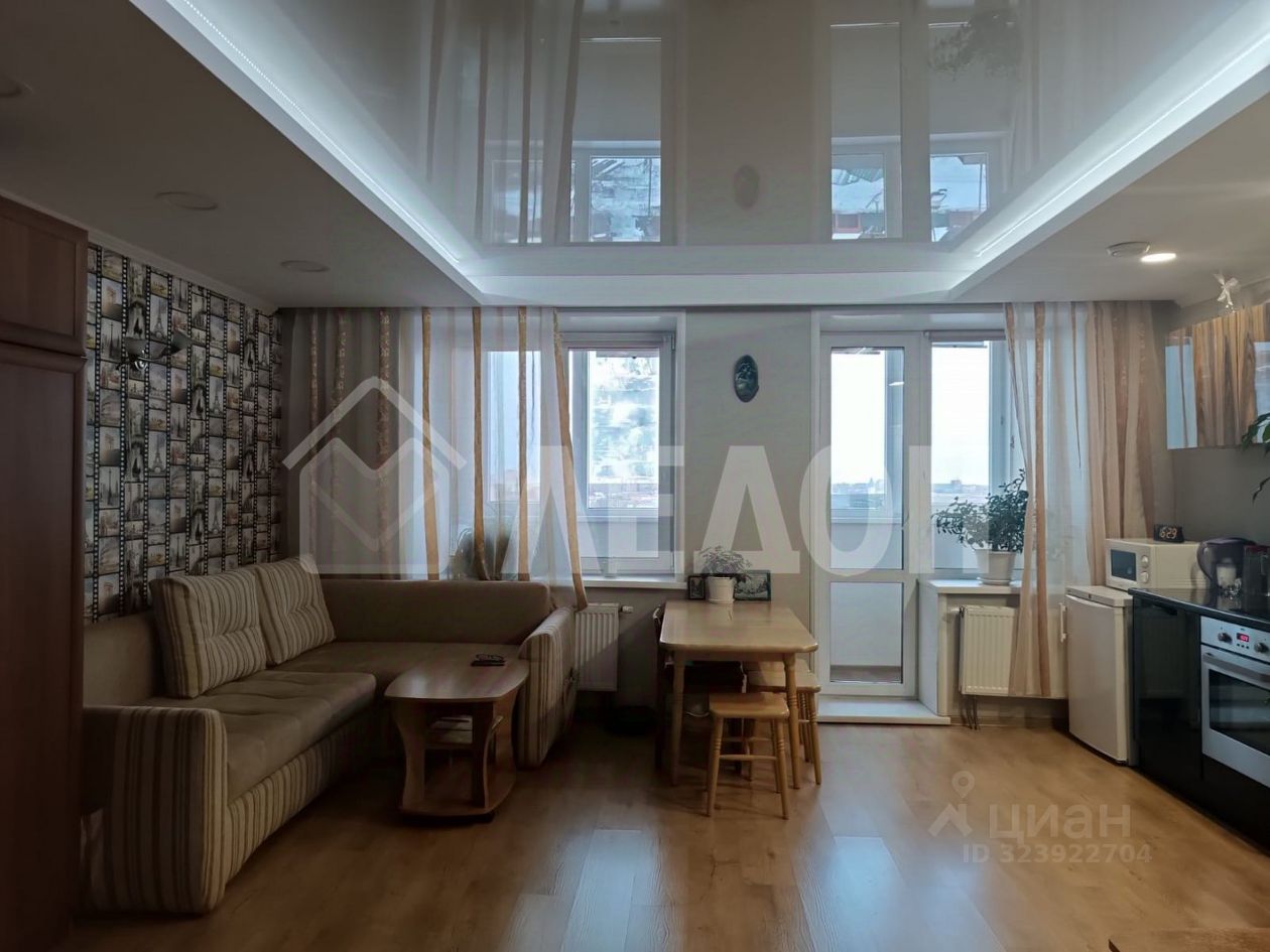 Удачная планировка квартиры отвечает современным требованиям: функциональная прихожая, санузел - 5 кв м, просторная комната с зоной для готовки и приема пищи и организованным местом для отдыха. Есть возможность разделить пространство на комнату, кухню. Предусмотрена гардеробная. В квартире выполнен качественный ремонт, установлены счетчики ГВС, ХВС, тепловой. Лоджия застеклена, оборудована шкафами. Встроенный кухонный гарнитур, мебель для прихожей включены в стоимость объекта.