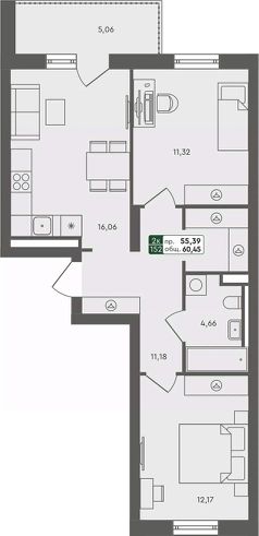 Общая площадь60,45 м²