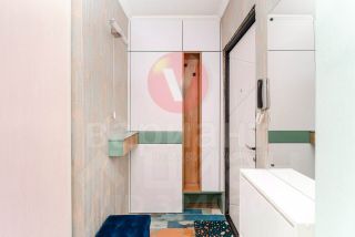 Установлен новый кондиционер. Поменяны радиаторы отопления. Ванна - кафель, новая сантехника. На кухне современный гарнитур со встроенной техникой (газовая панель, духовой шкаф, вытяжка). В коридоре новый вместительный шкаф. В комнате новые навесные шкафы, по дизайн-проекту. Пол линолеум.