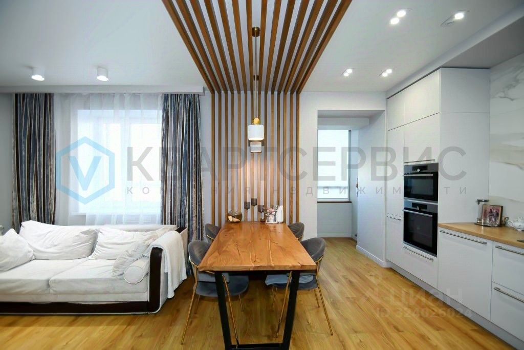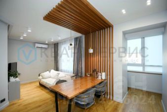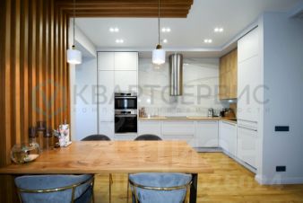 Ремонт: в квартире выполнен качественный ремонт. Стены отштукатурены и выкрашены, на полу кварцвинил. Немецкий кухонный гарнитур изготовлен на заказ и укомплектован необходимой техникой. Балконы застеклены: один оборудован стеллажами и используется как дополнительное место хранения. Второй - хозяйственный блок.