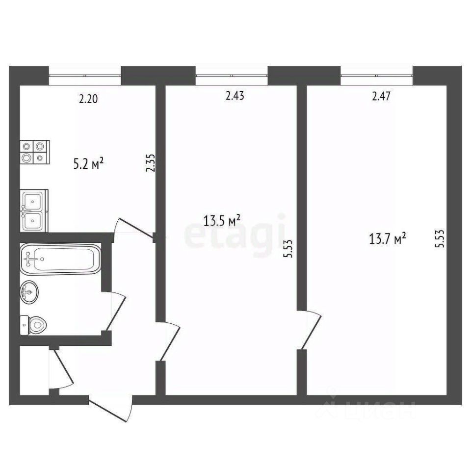 Из окон открывается приятный вид на тихий двор, где расположены детская и спортивная площадки, что особенно ценно для семей с детьми.