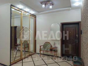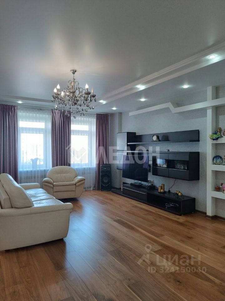 Квартира солнечная, теплая. Удачная планировка : просторная функциональная прихожая со шкафом-купе, две изолированные спальни - 18, 2 кв м, 28,8 кв м, кухня-столовая -47 кв м с выходом на лоджию, с окон которой открывается прекрасный вид на город. Предусмотрена гардеробная. Грамотно продуман санузел, где расположены джакузи, стационарная душевая комната с генератором для подачи пара в сауну, туалет. Квартира меблирована; встроенная мебель и техника включены в стоимость объекта.
