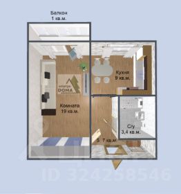 Полнометражная квартира 38,1 кв.м. с кухней 9 кв.м. и комнатой 19 кв.м.