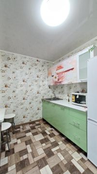 В комнату заведена вода, выделена удобная зона кухни. Окно ПВХ ориентировано на западную сторону. В подарок новым владельцам остаются кухонный гарнитур и мебель. В секции имеется балкон. Места общего пользования — в отличном состоянии, санузел и душ рассчитаны на две семьи. Дом также находится в очень хорошем состоянии.