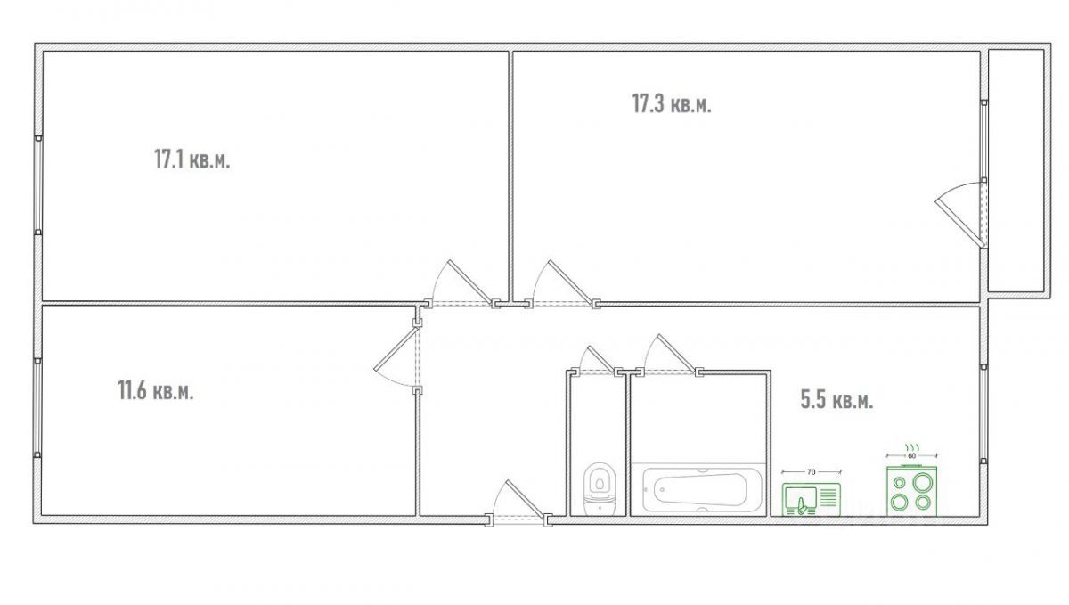 • Санузел: Раздельный, что удобно для семей с детьми.