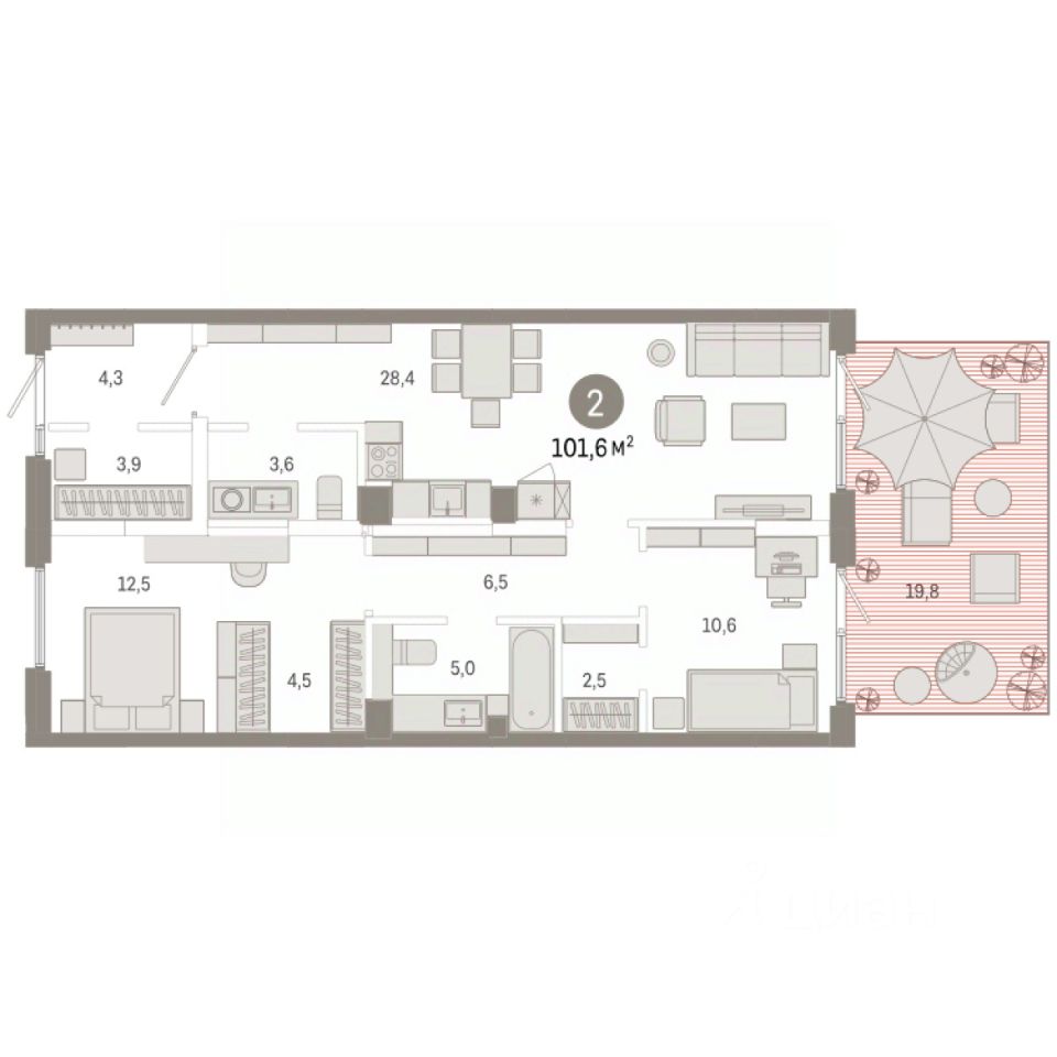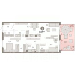 Продается 2-комн. квартира с предчистовой отделкой в Кварталы Драверта на 1 этаже. Общая площадь: 101.61 кв.м., жилая: 23.1 кв.м., площадь просторной кухни-гостиной: 28.4 кв.м. Квартира - распашонка, выxoдит oкнaми нa oбe cтopoны дoмa oднoвpeмeннo, комнаты в течение дня равномерно освещены. В квартире один балкон, один совмещенный и один раздельный санузел. Наличие в квартире террасы дает возможность для создания зон отдыха в кругу семьи и друзей. Высота потолков 2.7 м.
