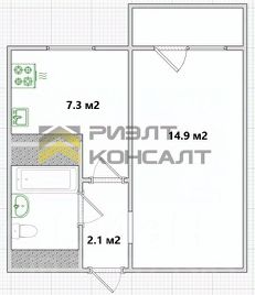 Квартира включает в себя комнату, кухню, совмещенный санузел, прихожую, застекленную лоджию.