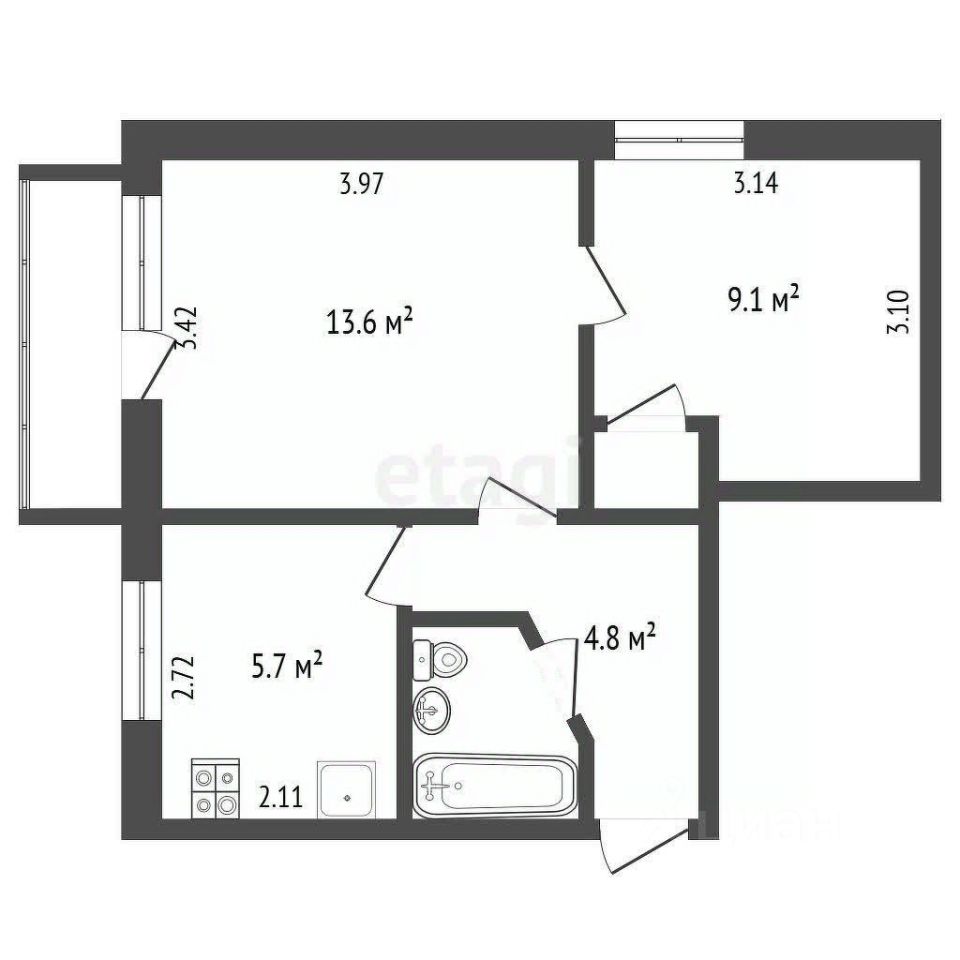 Рациональная планировка позволяет эффективно использовать площадь квартиры. Отделка выполнена в нейтральных тонах, что облегчает реализацию любых дизайнерских решений без необходимости делать крупный ремонт.