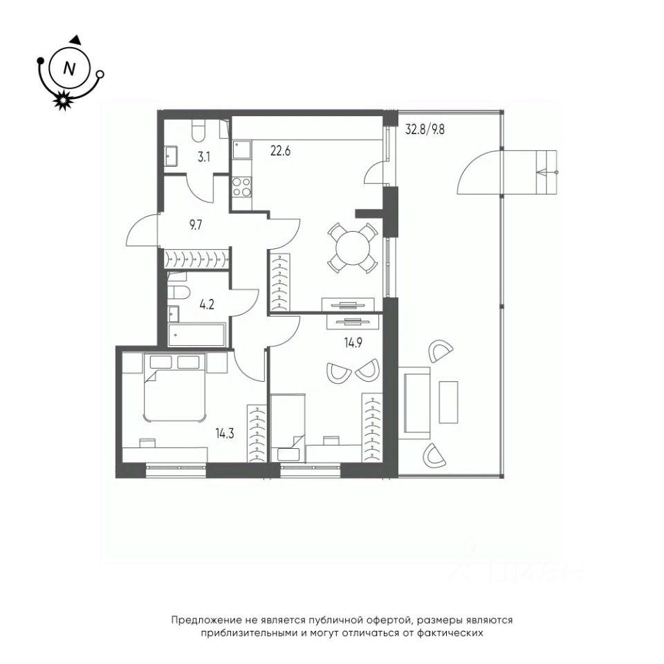 Общая площадь квартиры — 78.6 кв. м, этаж 1 из 9.