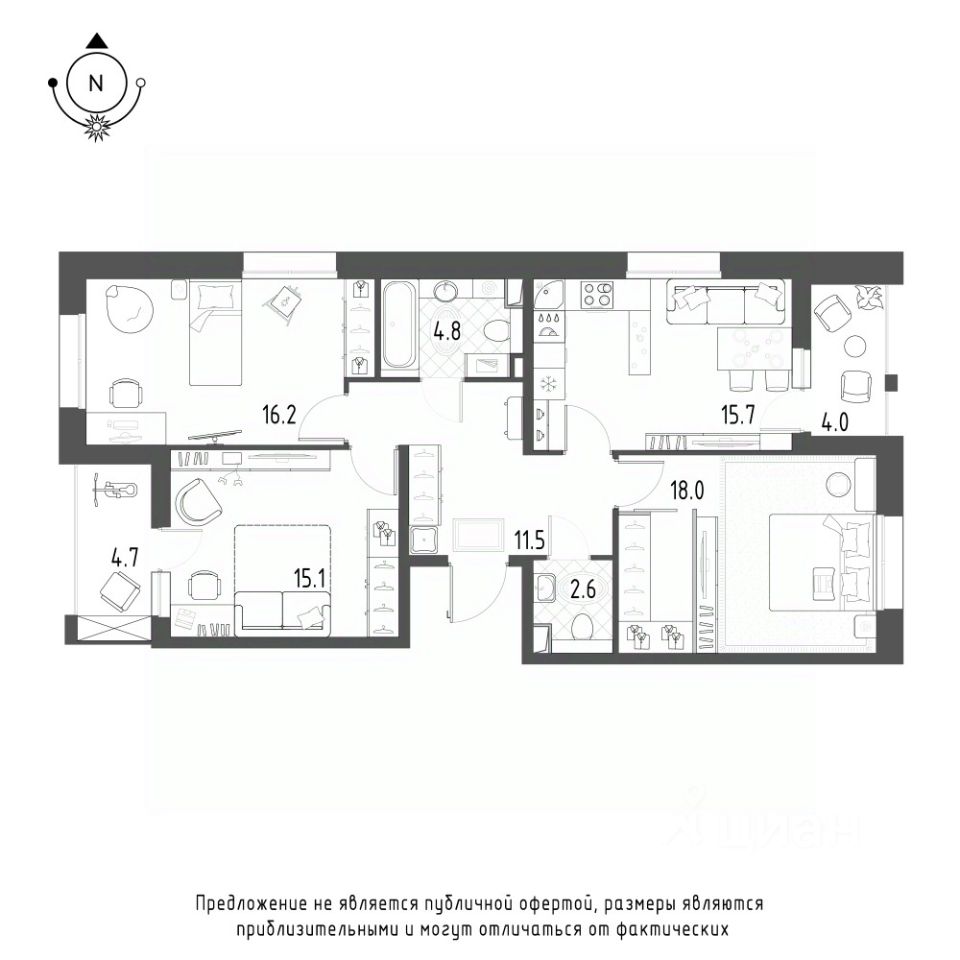 Продается 3-к квартира без отделки в ЖК "Зеленая Река".