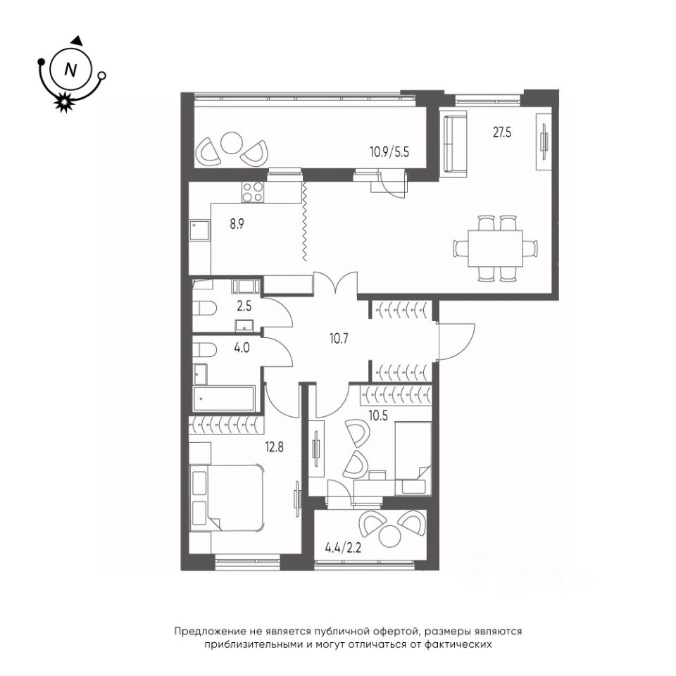 Общая площадь квартиры — 84.6 кв. м, этаж 9 из 12.
