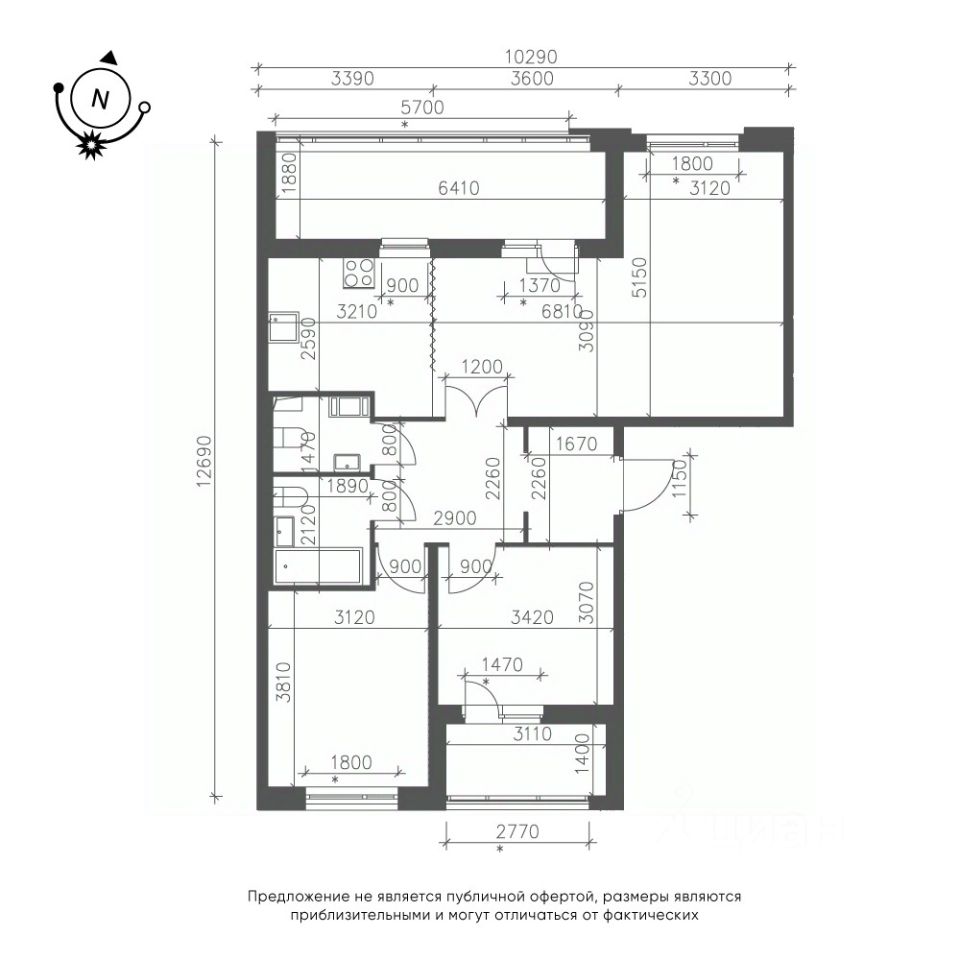 Продается 3-к квартира без отделки в ЖК "Зеленая Река".
