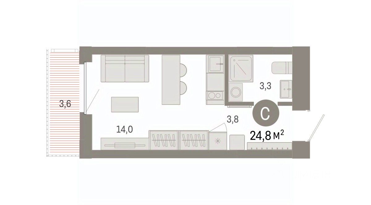 Студия в Кварталах Драверта. Особенности планировки: балкон, предчистовая отделка.