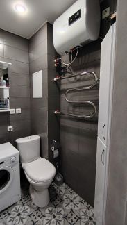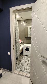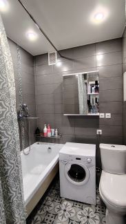 Санузел совмещенный, в отличном состоянии. Остаётся стиральная машинка.