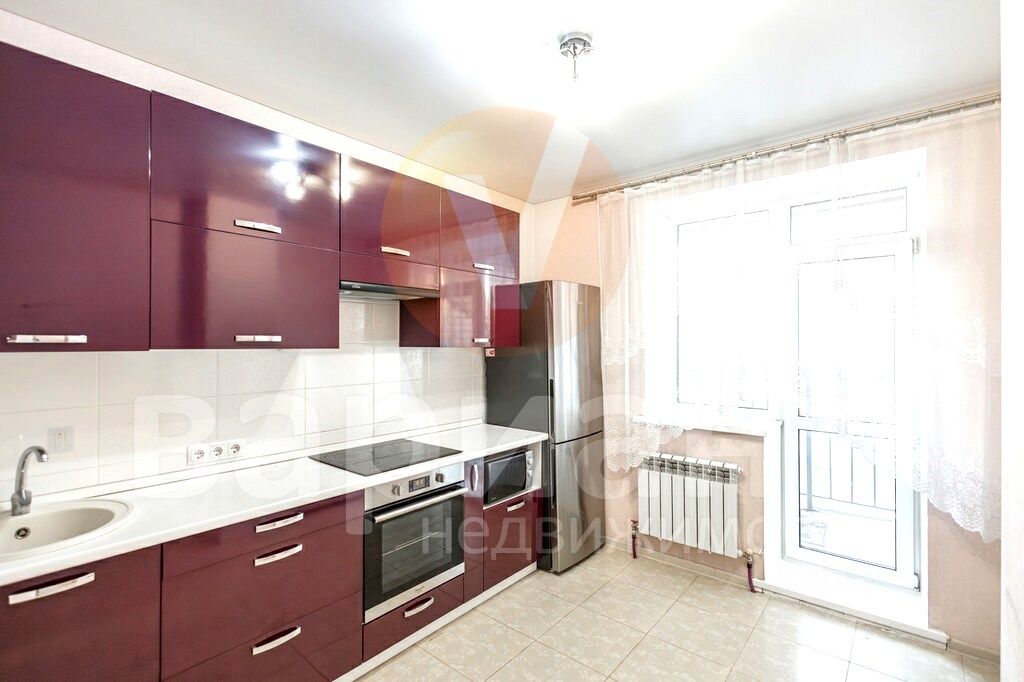 Просторная кухня-столовая с выходом на лоджию, укомплектована всей необходимой мебелью и техникой.
