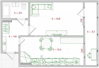 - Просторная кухня с возможностью адаптации под зону гостиной.