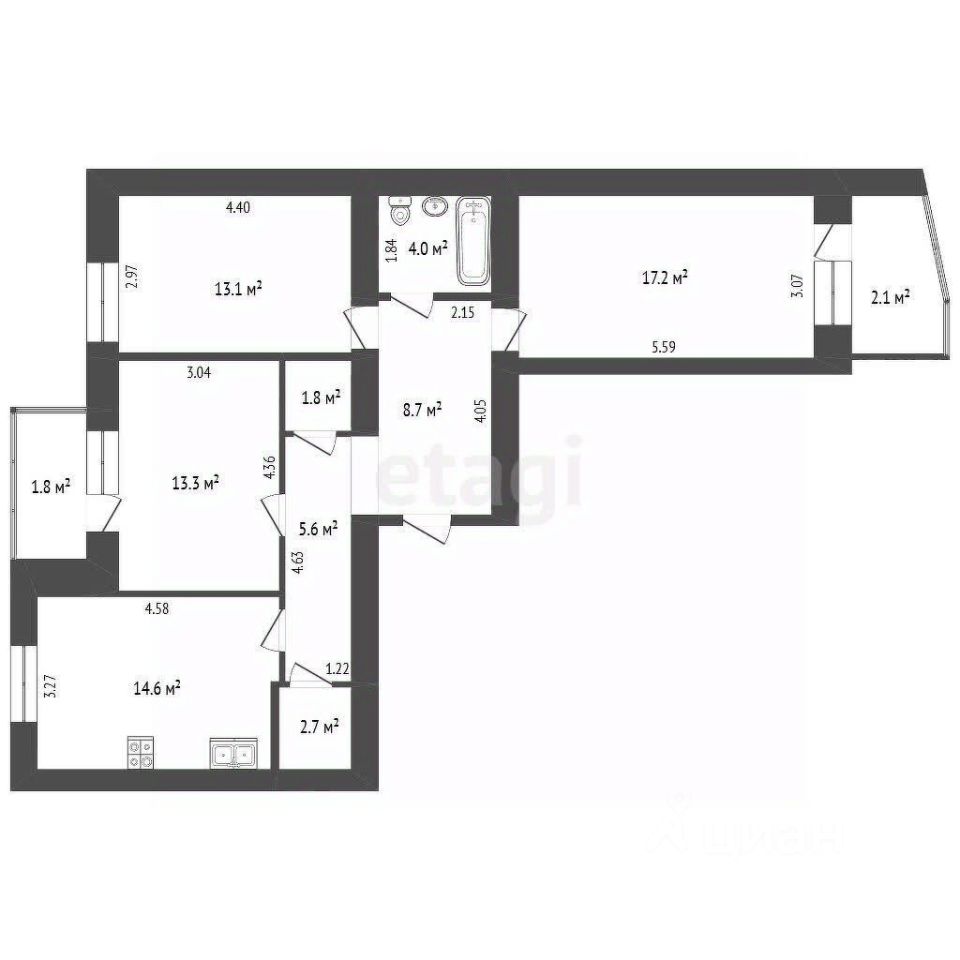 14,7 м²