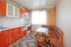 Квартира не угловая, с удобной планировкой "бабочка", что обеспечивает максимальное использование пространства. Просторная кухня с встроенной кладовой и кухонным гарнитуром. Раздельный санузел, выложенный плиткой.