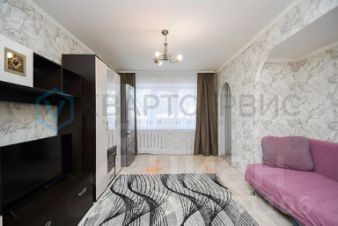 Квартира готова к проживанию: установлены хорошие окна, санузел облицован кафелем, на полу линолеум, остается кухонный гарнитур, шкаф в спальне.